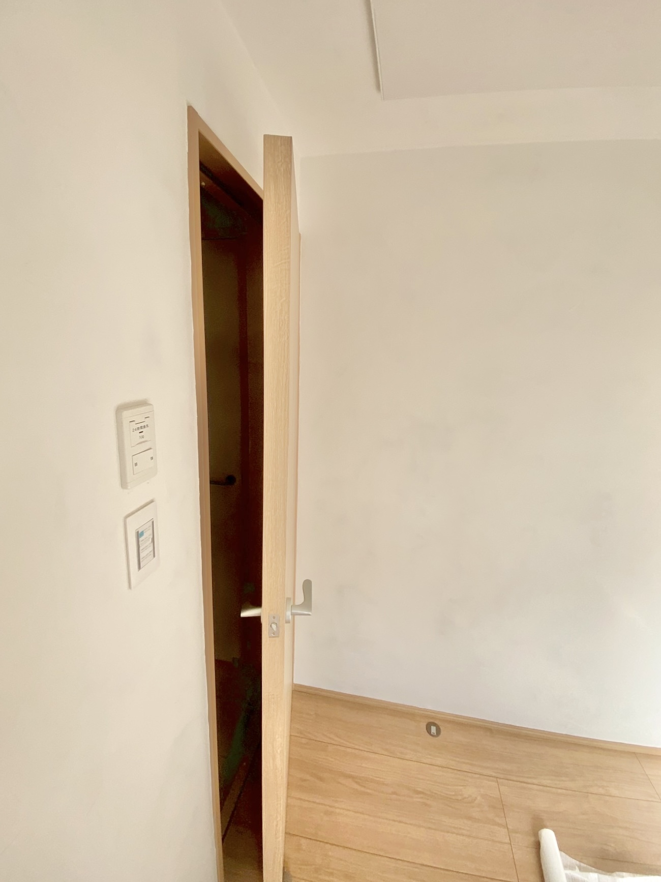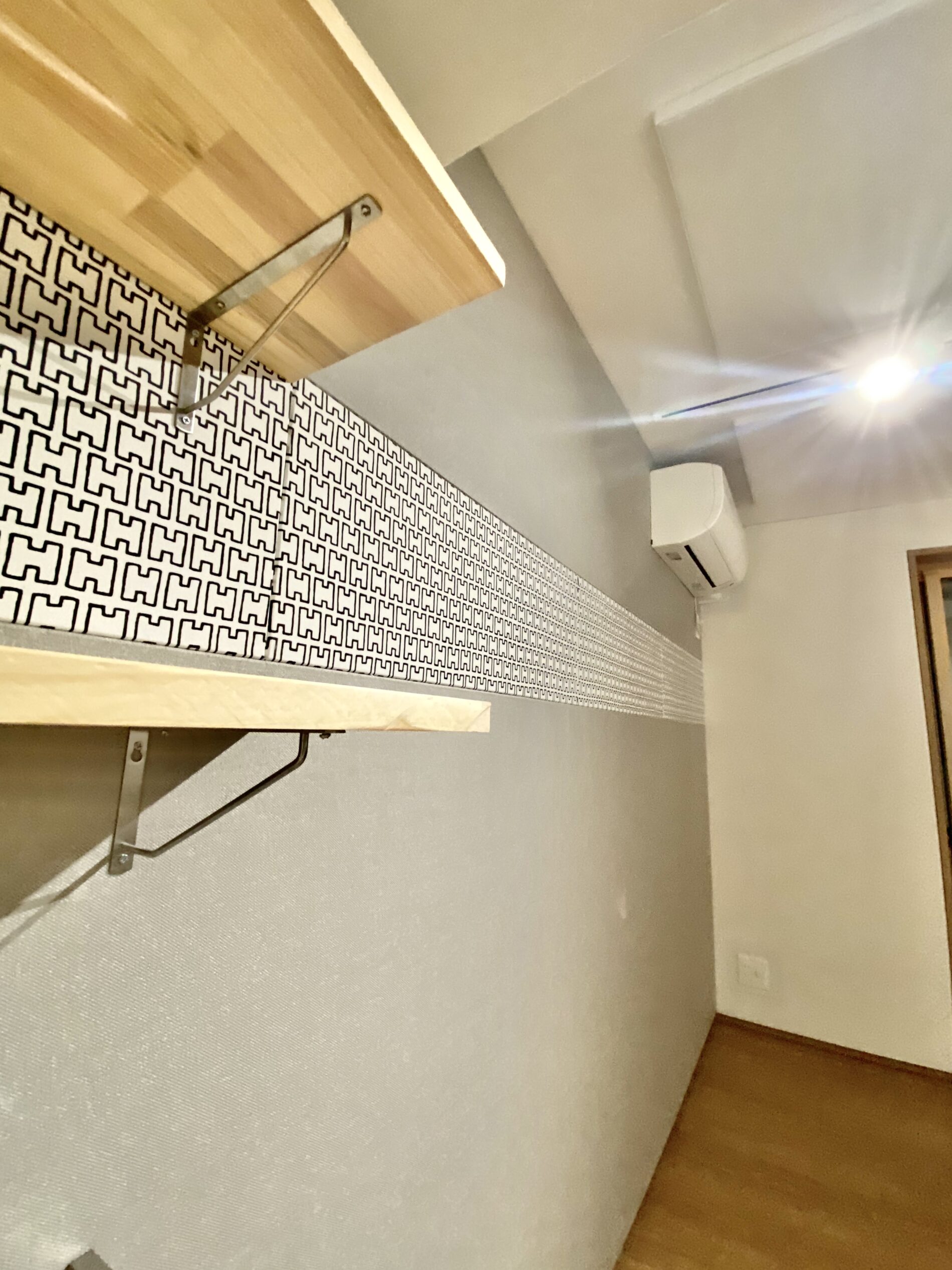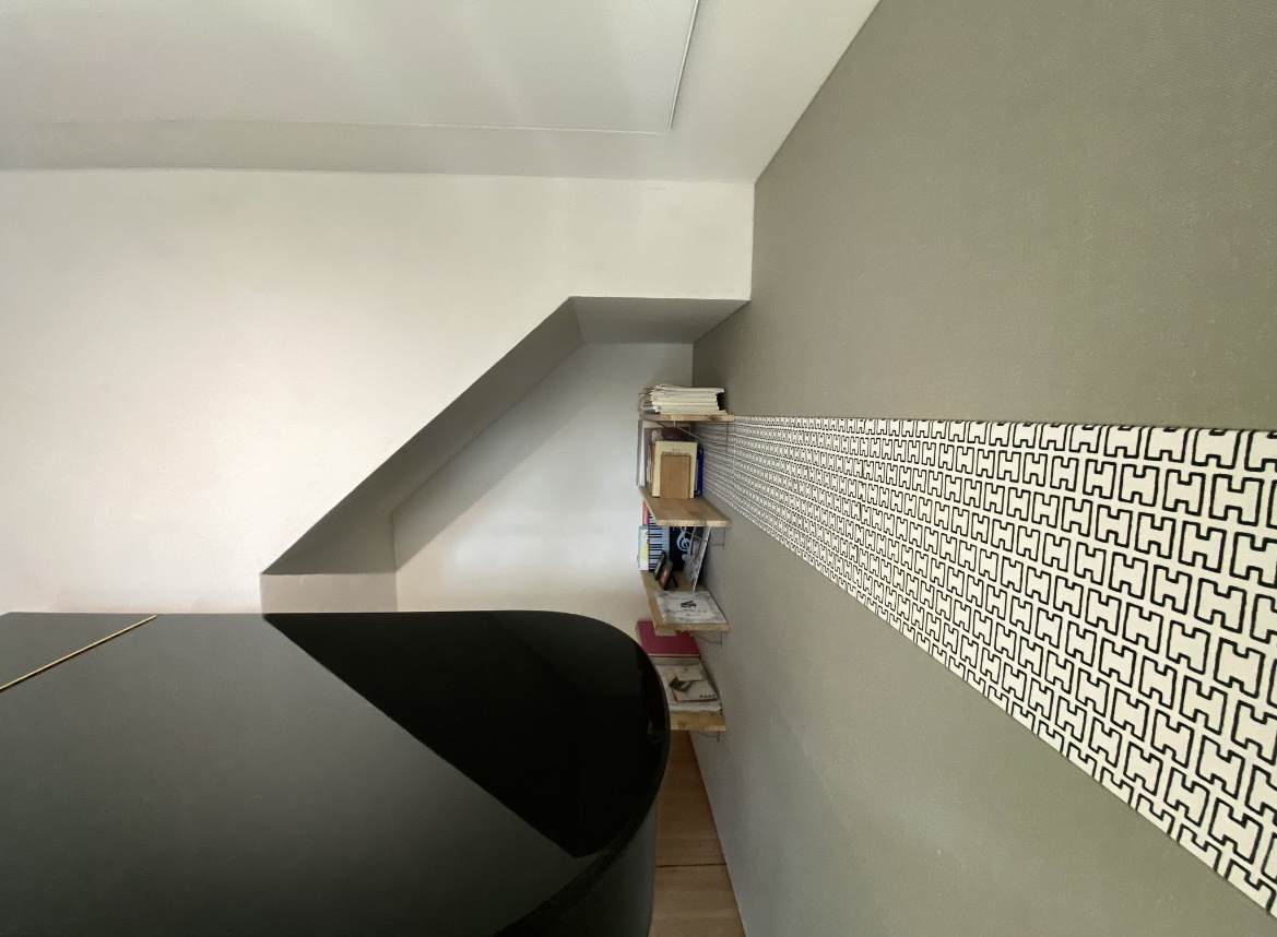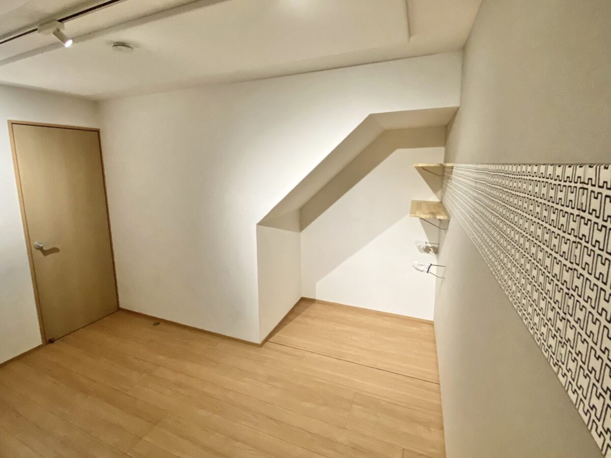 グランドピアノに対応できる防音室として、差し目地工法を用いて仕上げました。さらに、居心地のよさを高めるため、天井と壁には化石珊瑚と真菰の粉を混ぜた独自の漆喰を使用し、一部にはお好みのファブリックとしてフィンランドのアルテック生地を取り入れました。防音性能だけでなく、質感や雰囲気にもこだわった空間づくりを行っています。